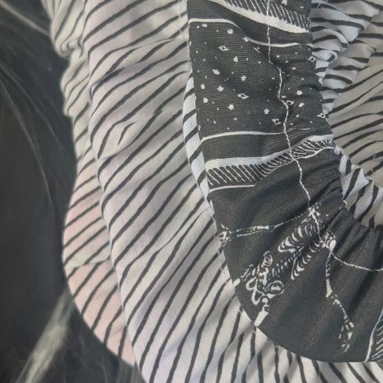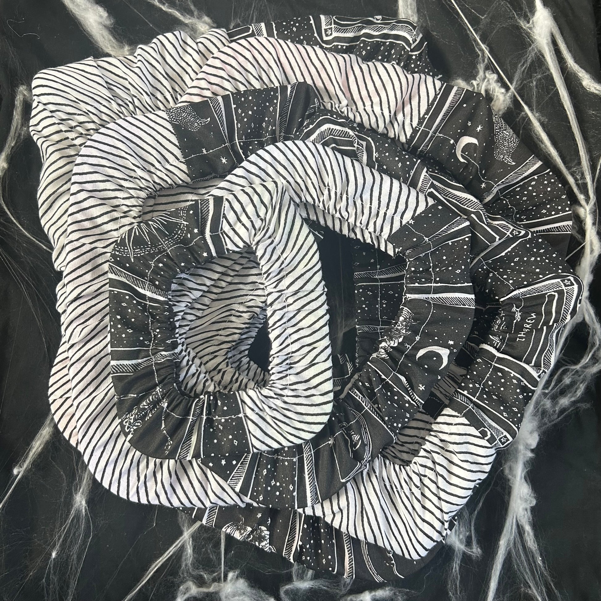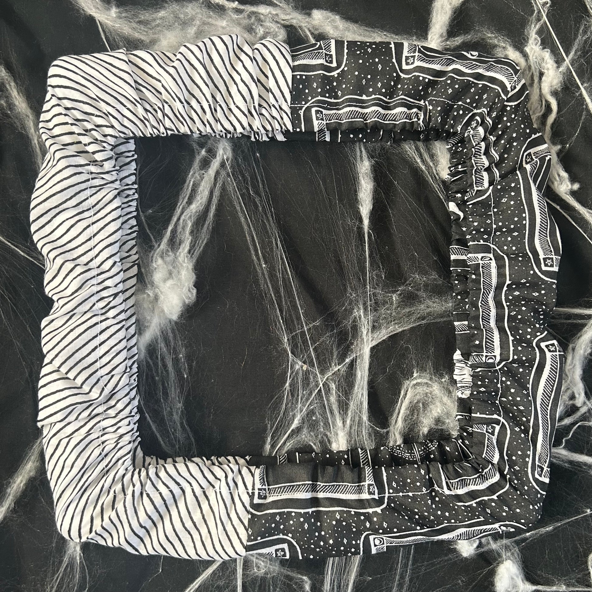 Drusilla grime guard is a fantastic way of ensuring your hard work stays protected - no getting unwanted marks, blemishes or dirt on your piece from holding it in hand or in your stand. The material is half black and white stripe and the other half is tarot cards on black background